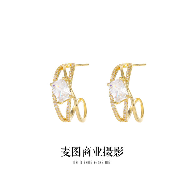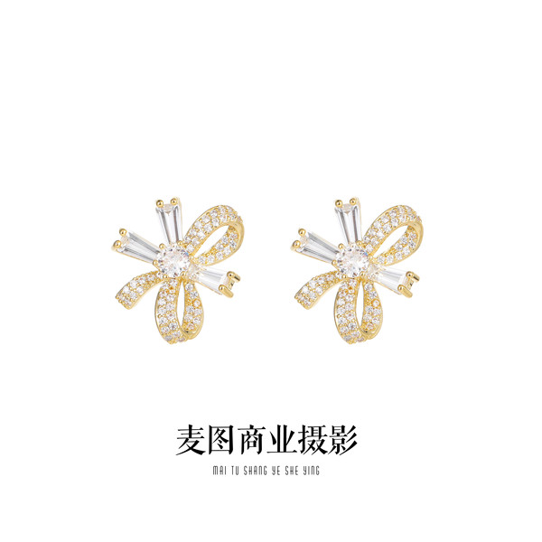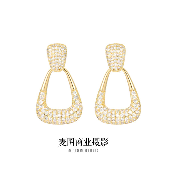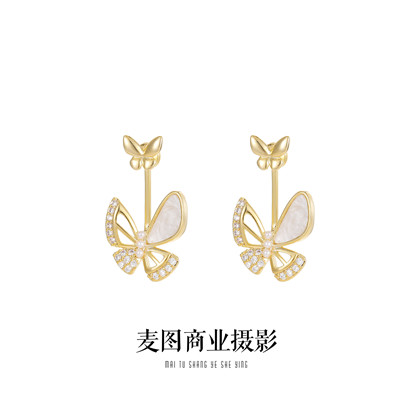 首饰饰品白底耳饰静物平铺拍摄 珠宝饰品静物拍照 模特