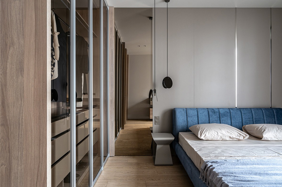 家装设计案例鉴赏——光与灰绿之中,坐落的简约新婚宅