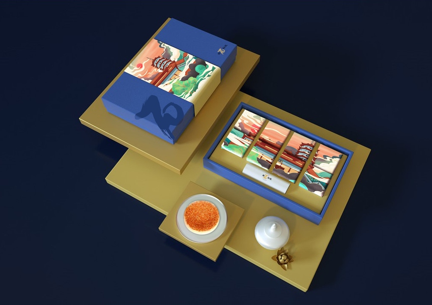 中秋国风礼盒插画x3(独角兽/兔子/中式园林)