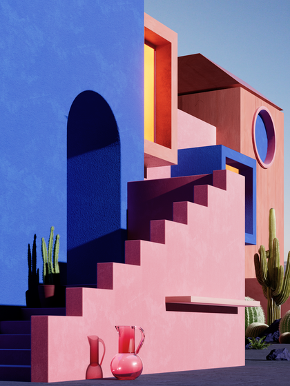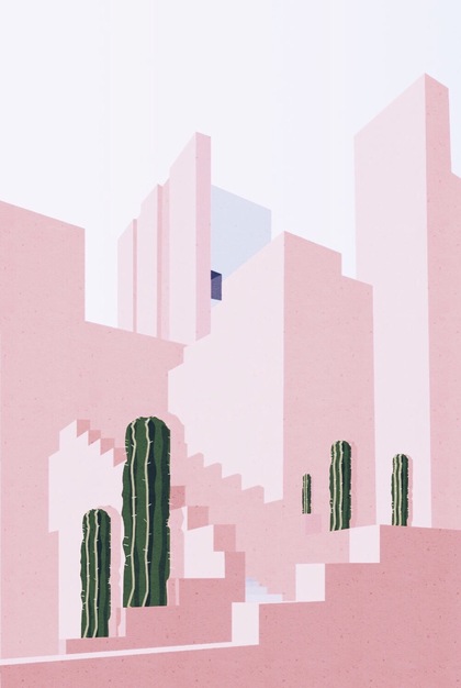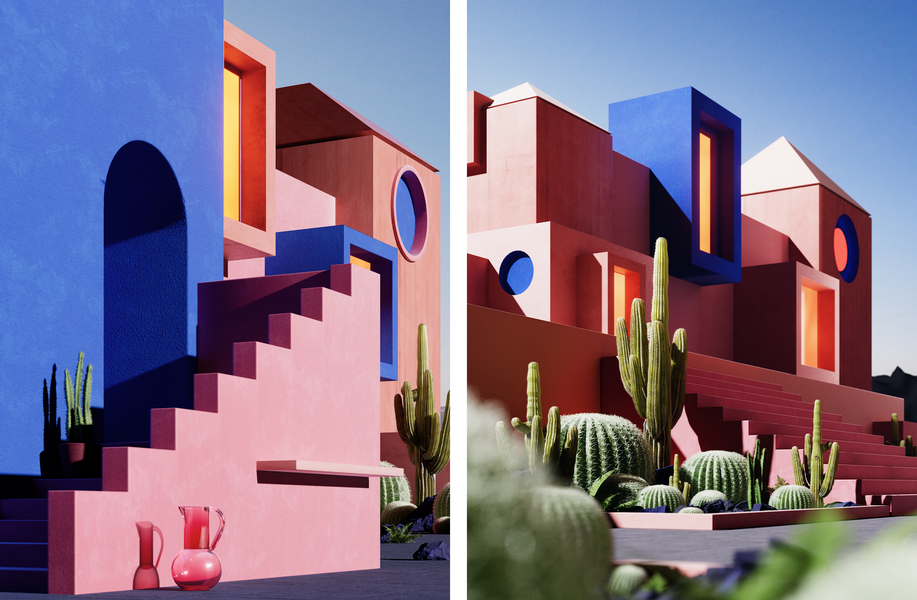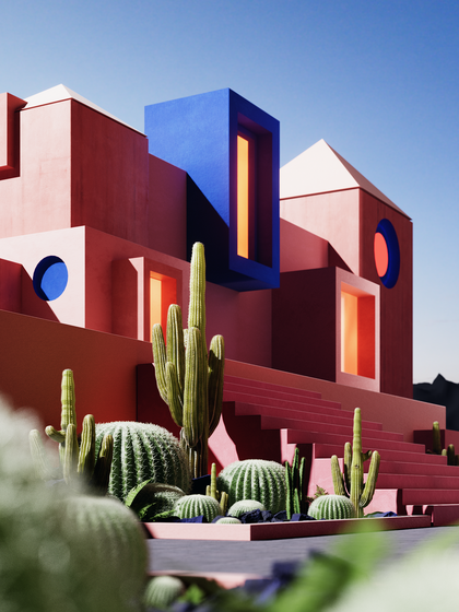几何建筑与仙人掌