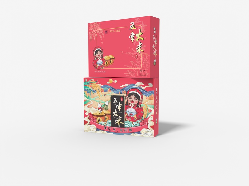 国潮卡通大米包装袋 包装盒+纸袋