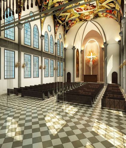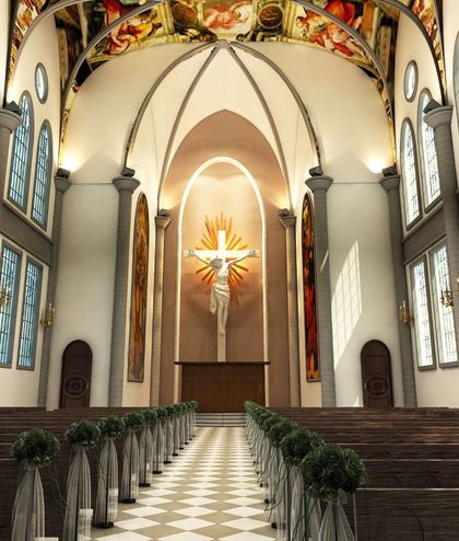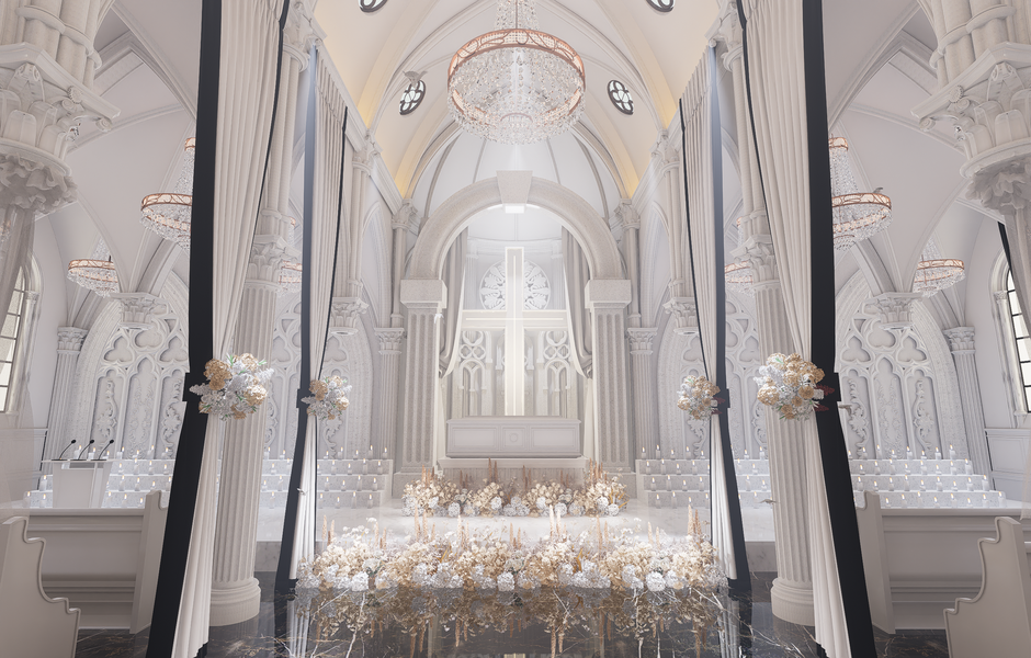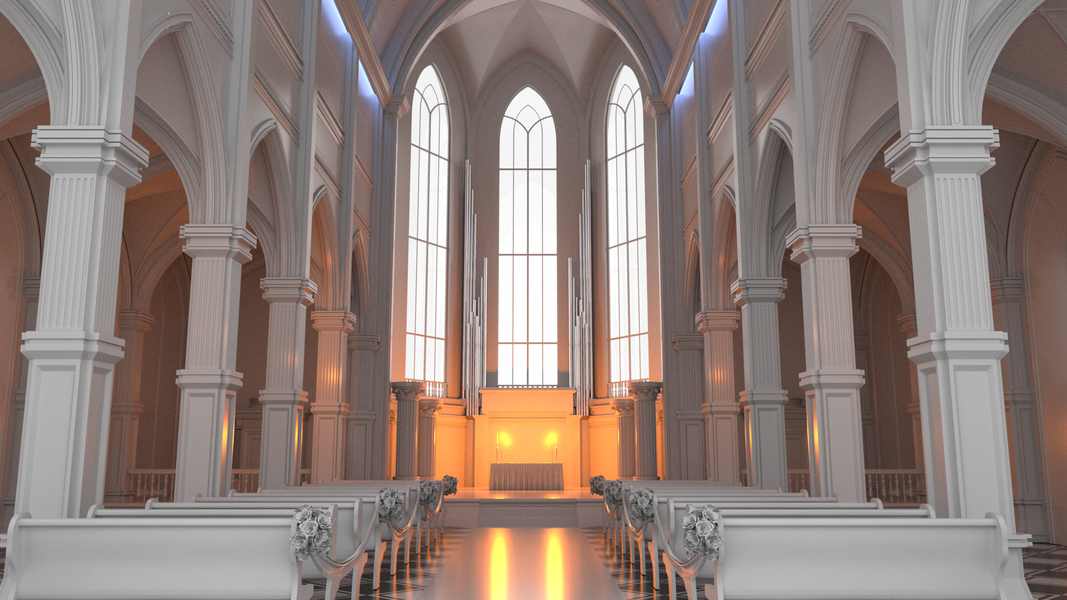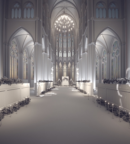 3d婚礼效果图 教堂自然光表现