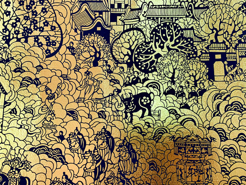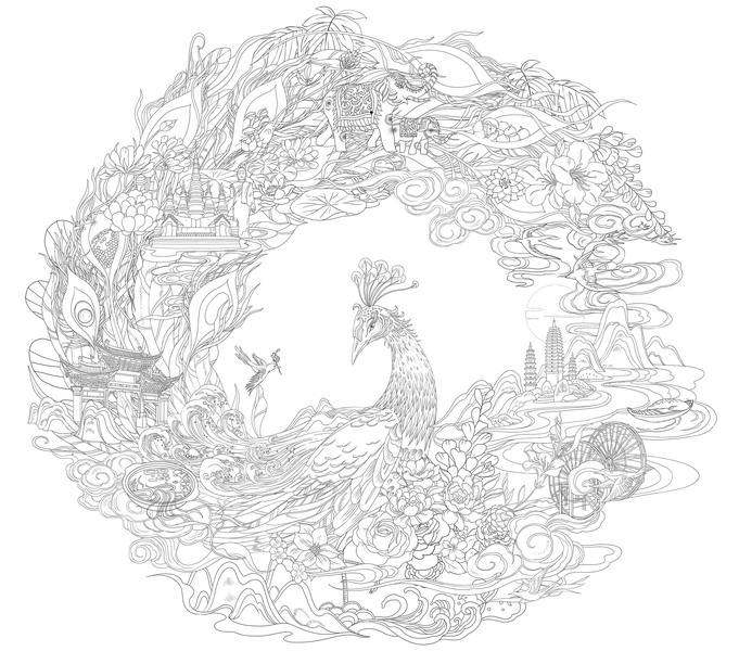 孔雀东南飞铜版画插画设计