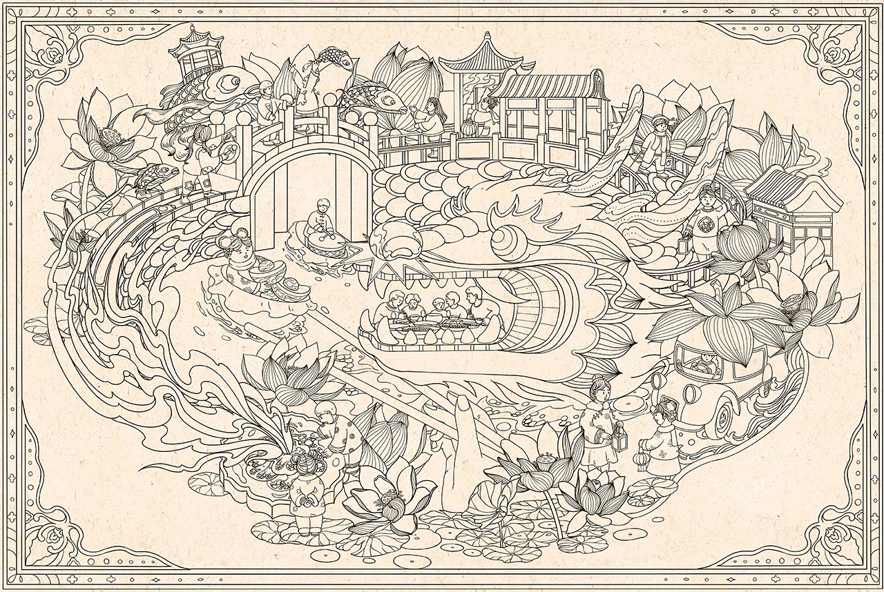 2024龙年春节国潮插画|龙腾虎跃×鱼跃龙门