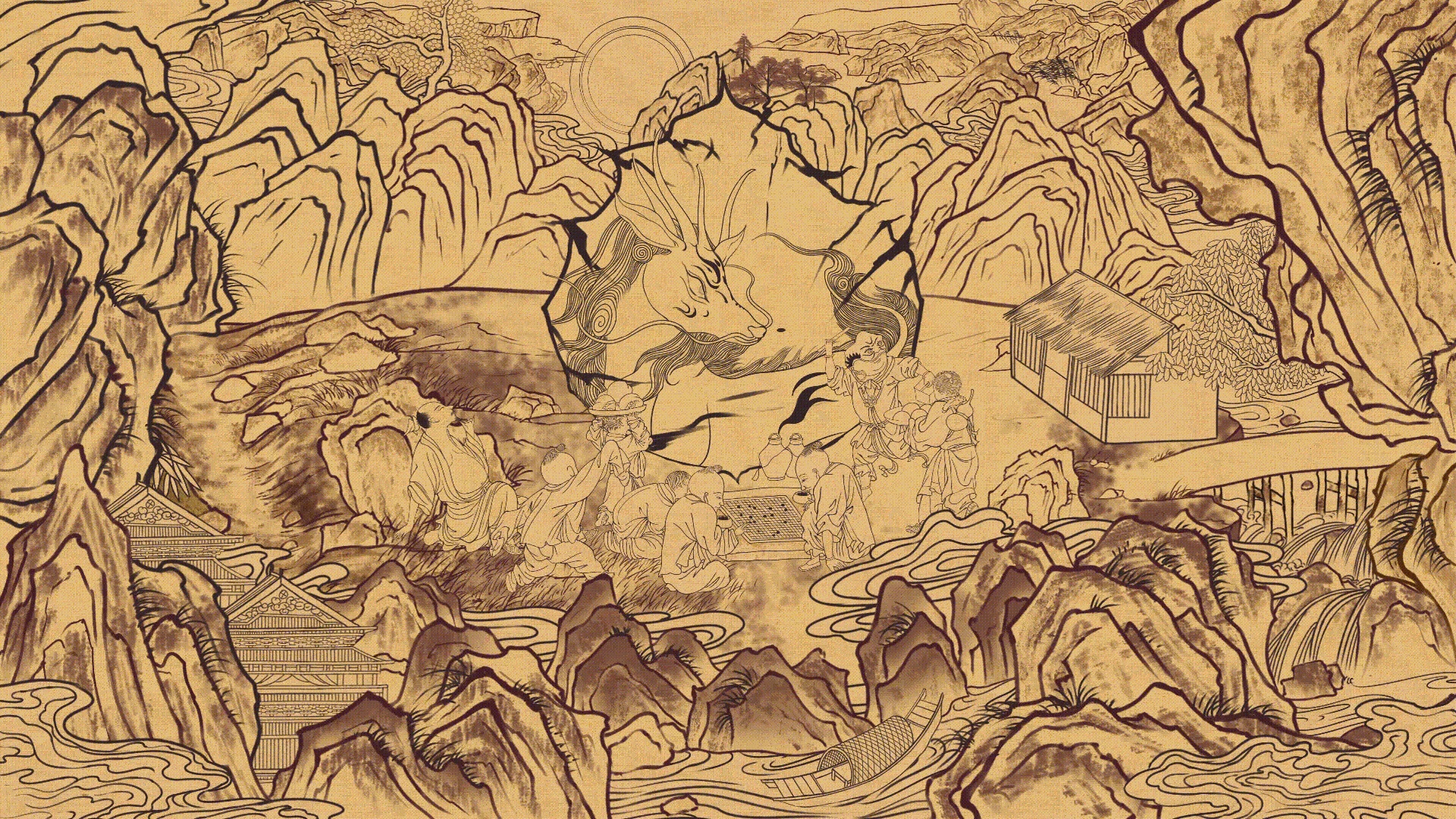 山海经麒麟版画,酒茶包装插画设计