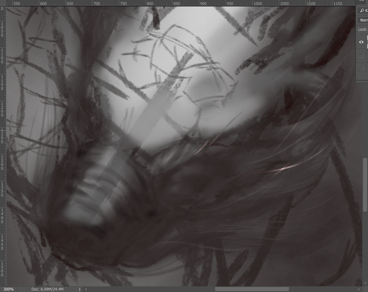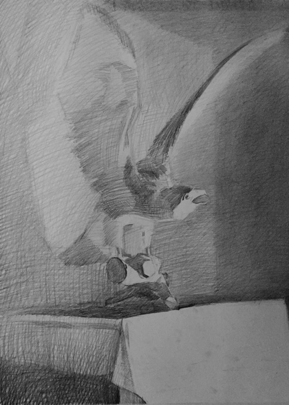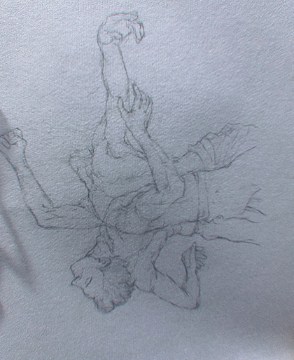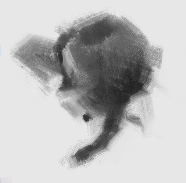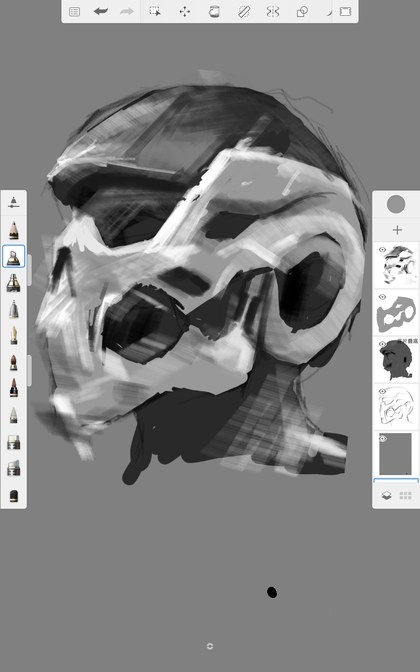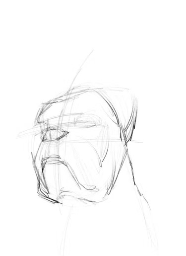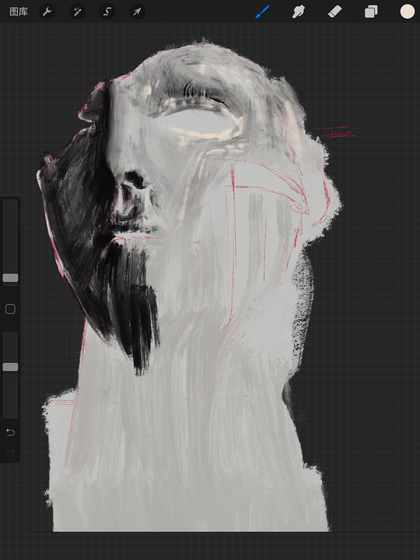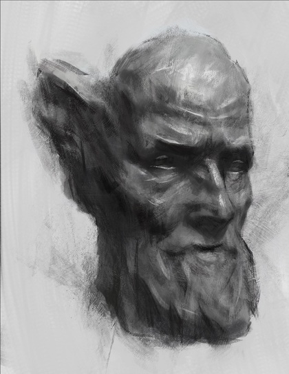 油画侠管郁生老师肖像画《秃顶长发老头》素描分解步骤