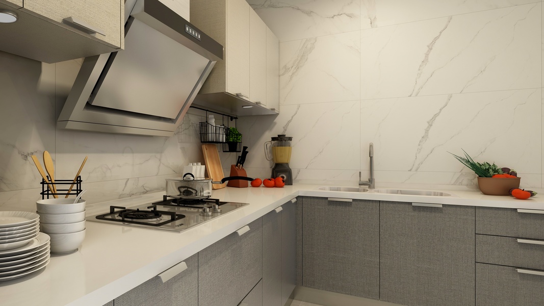 苏州-“运河水岸”别墅区客户简欧厨房设计,欧式橱柜设计,家具3D设计