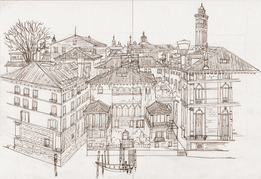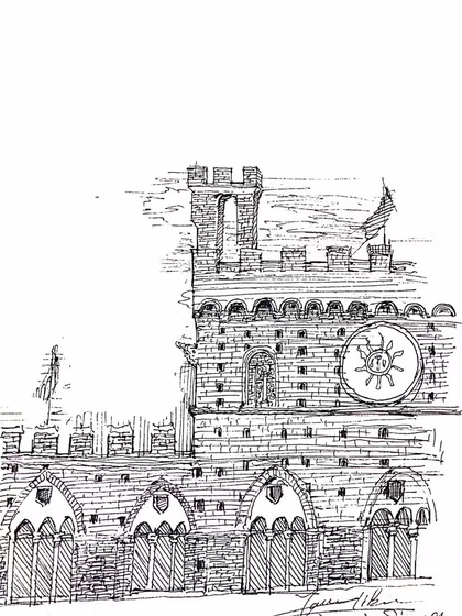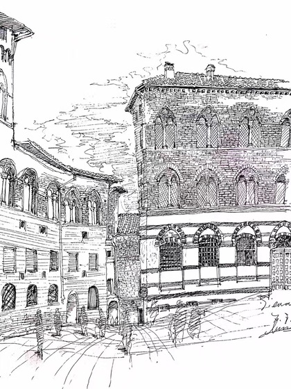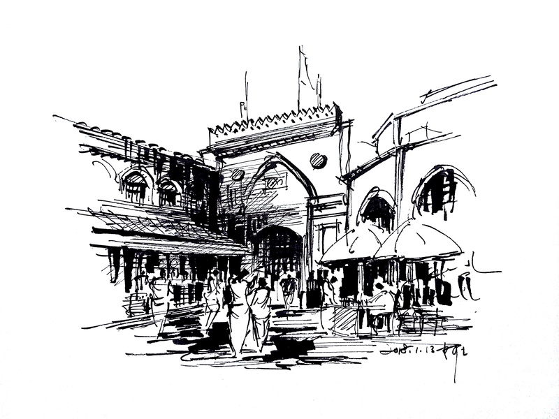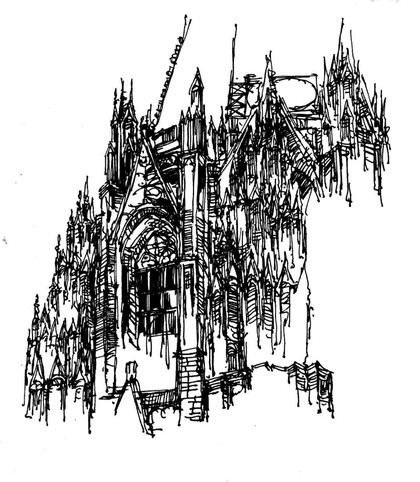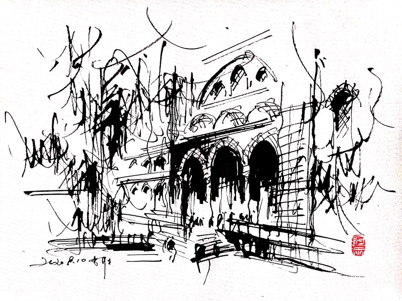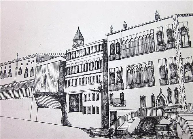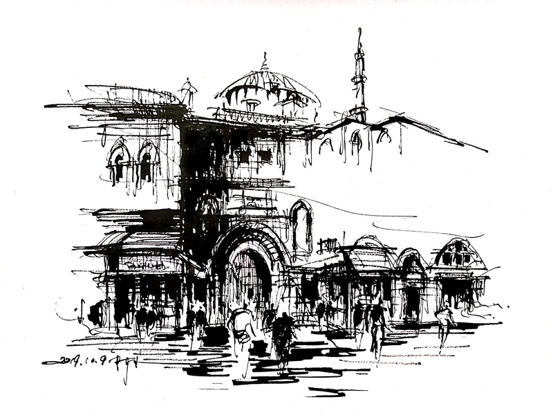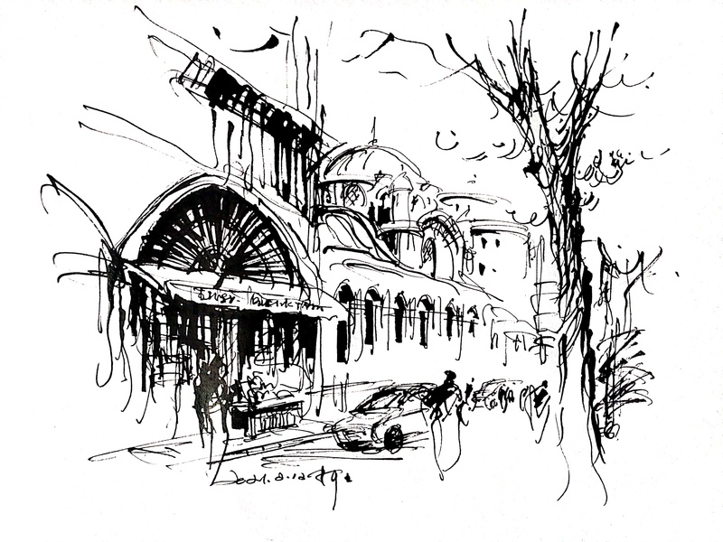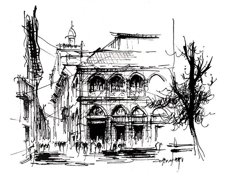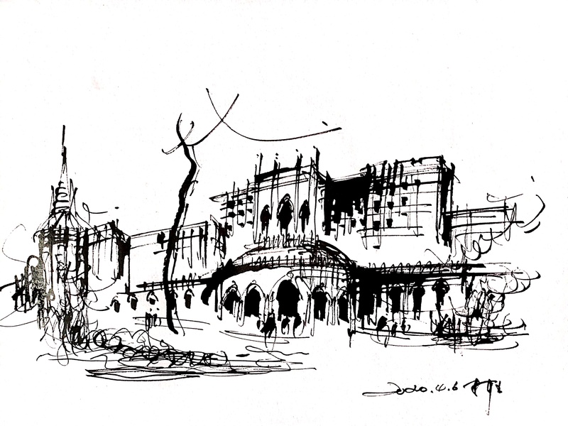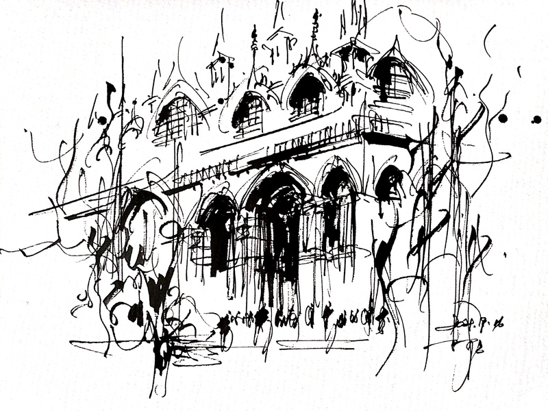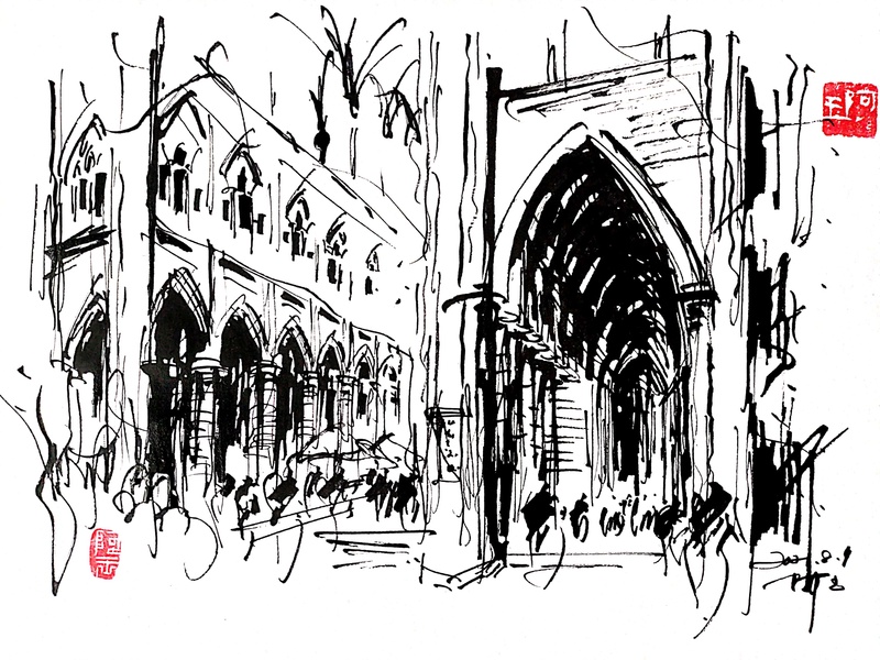 速写钢笔画阿王建筑风景