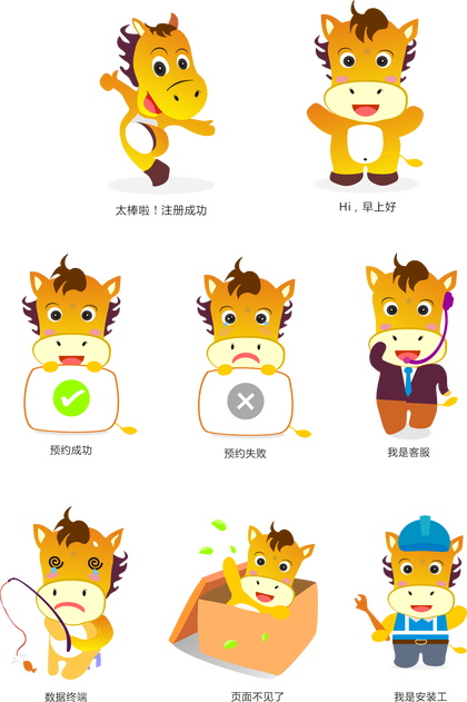 可爱的小马驹表情包IP形象插画设计