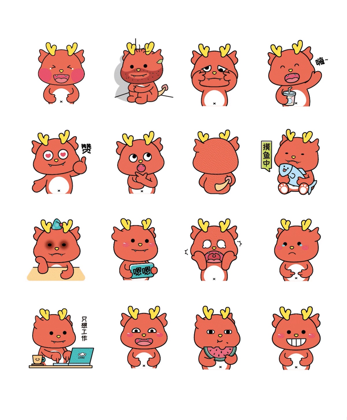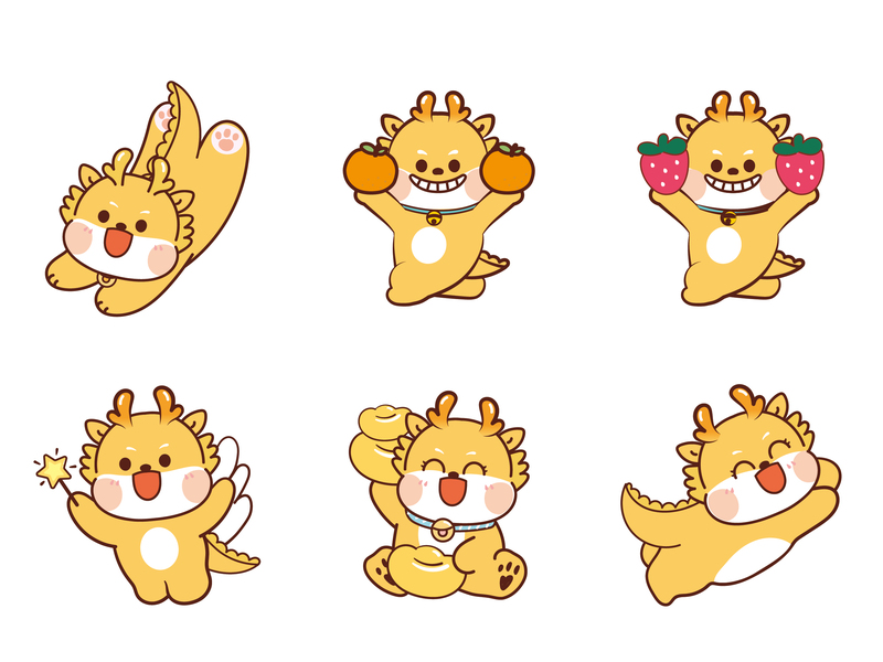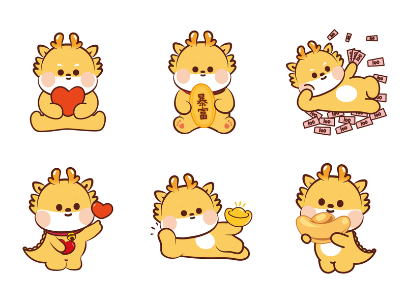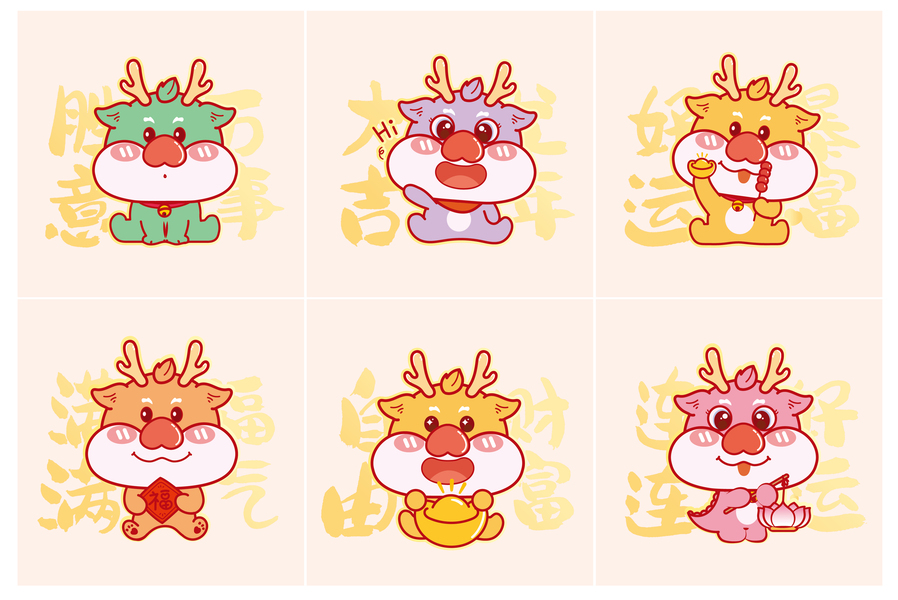 龙IP年贴纸设计龙年印花龙年卡通可爱抱枕地垫插画