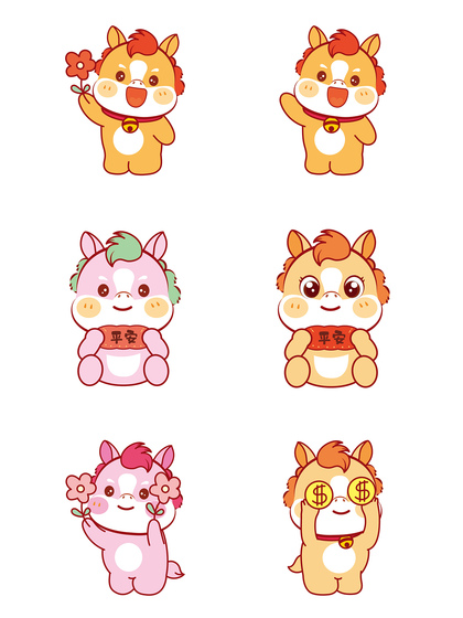 马年IP卡通形象插画表情包设计生肖吉祥物原创