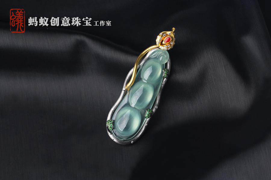 【蚂蚁创意珠宝工作室】马蹄莲翡翠四季豆吊坠