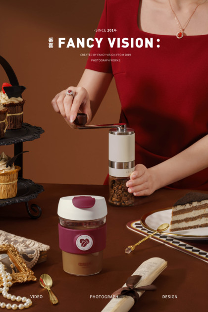 暖杯垫详情页配图|冇心奶茶色冬季温暖感