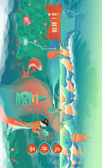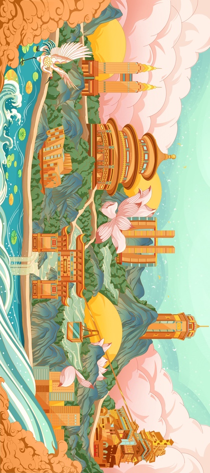山西长治城市插画|中国—东盟人文交流年文创插画《大美山西,长治长安》