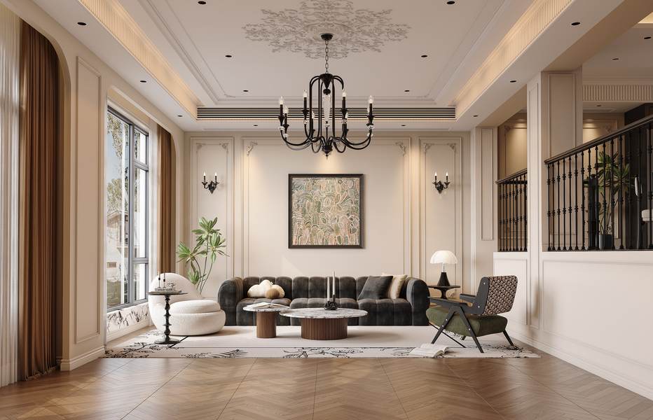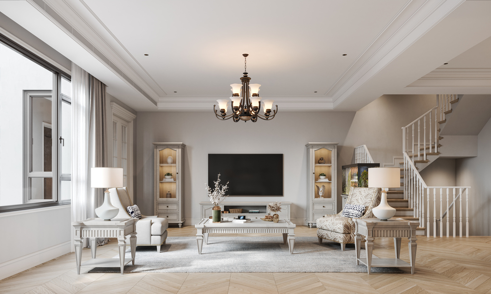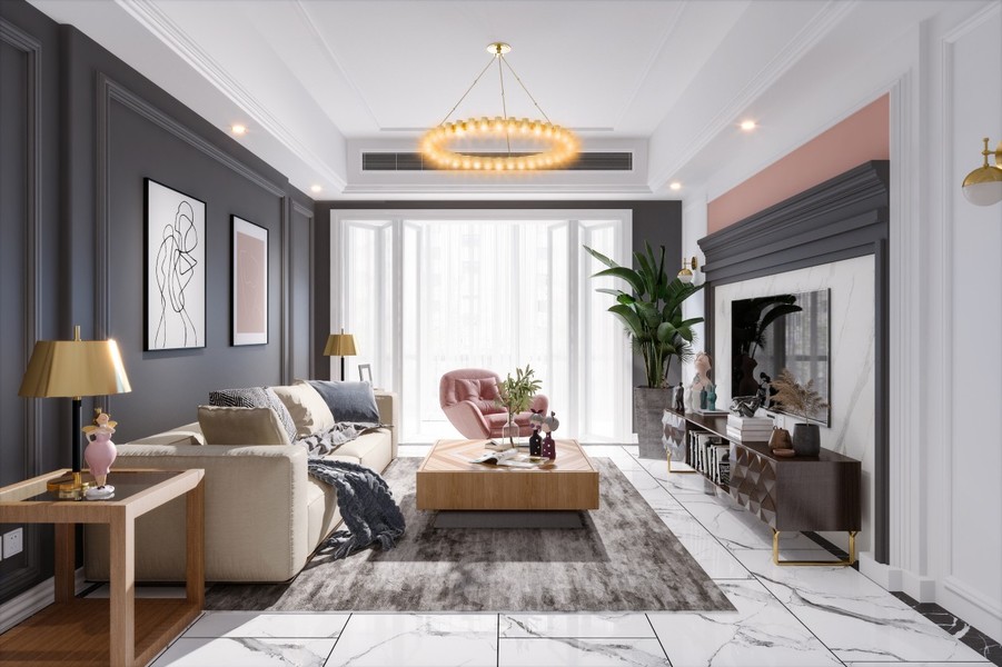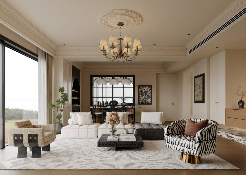 美式轻奢风客餐厅-主卧-次卧-榻榻米 。这