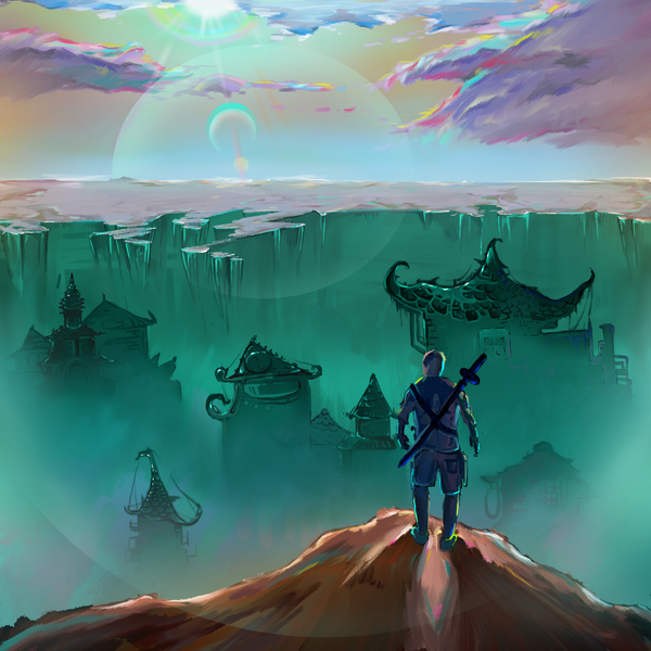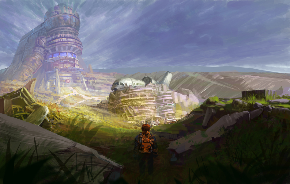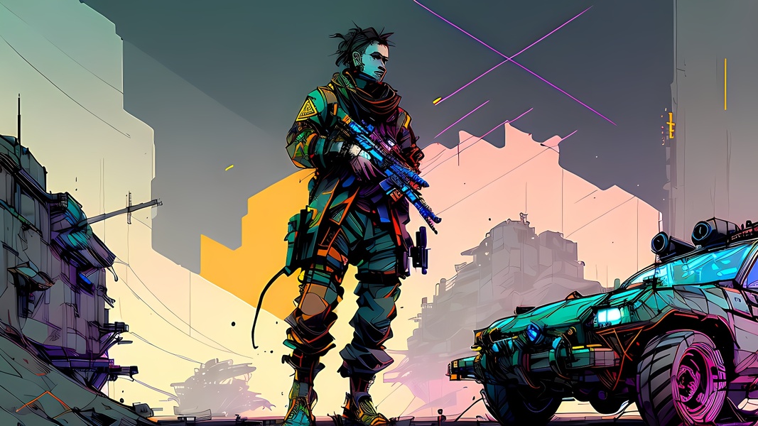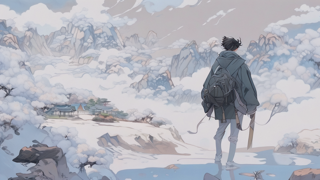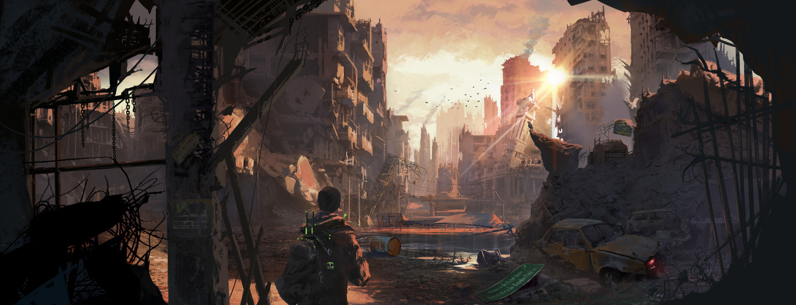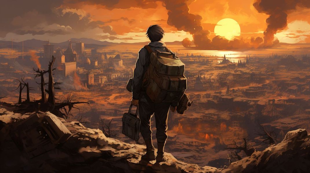 (ai创作分享)一个男人带着一个背包浏览世界末日风景
