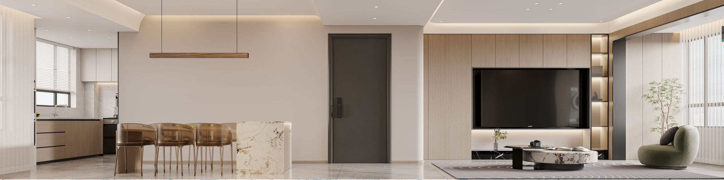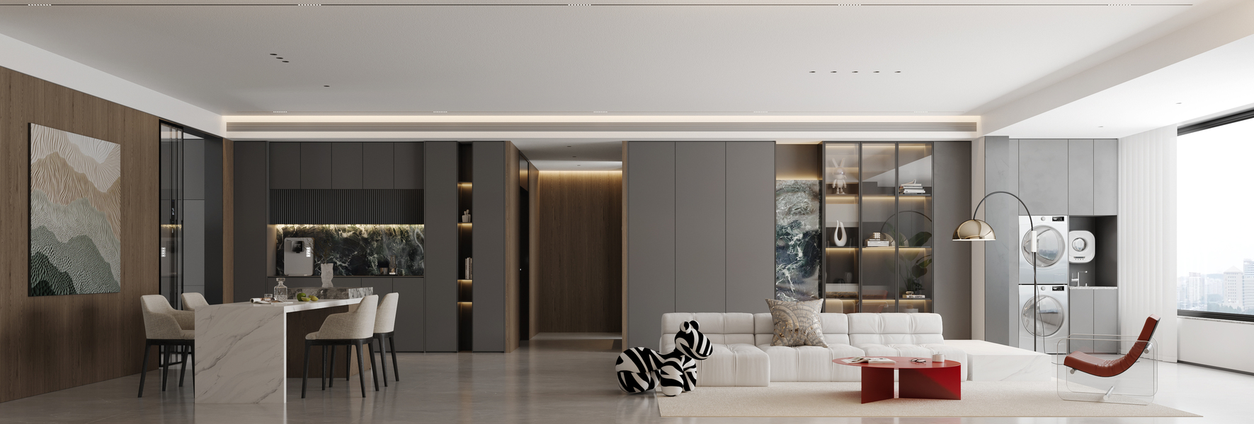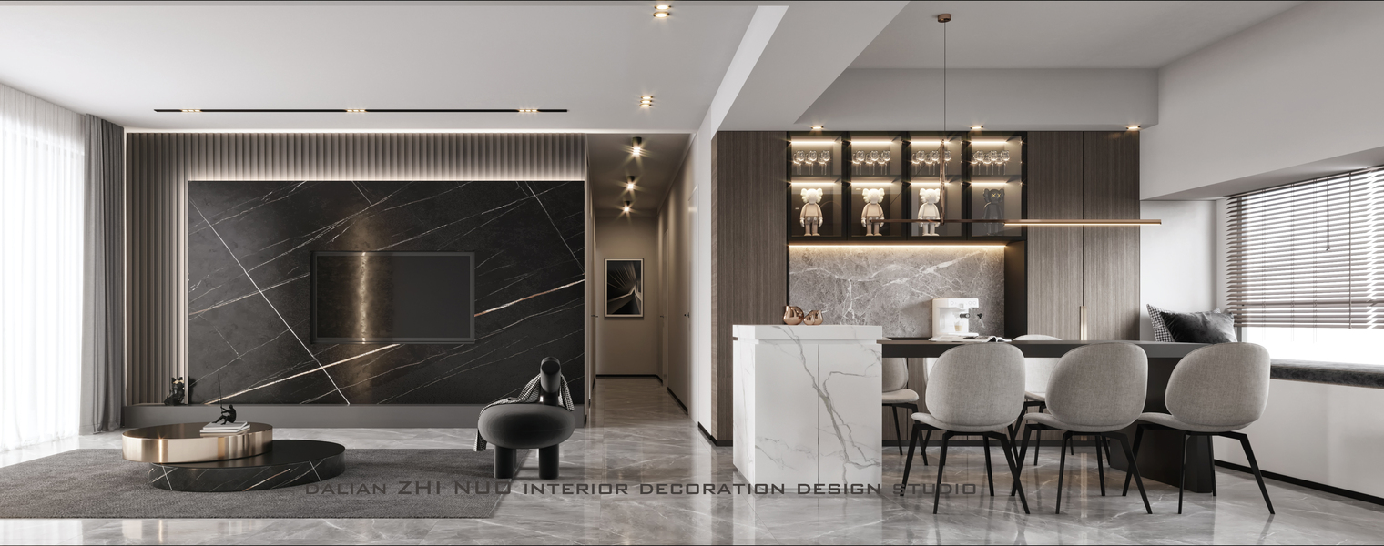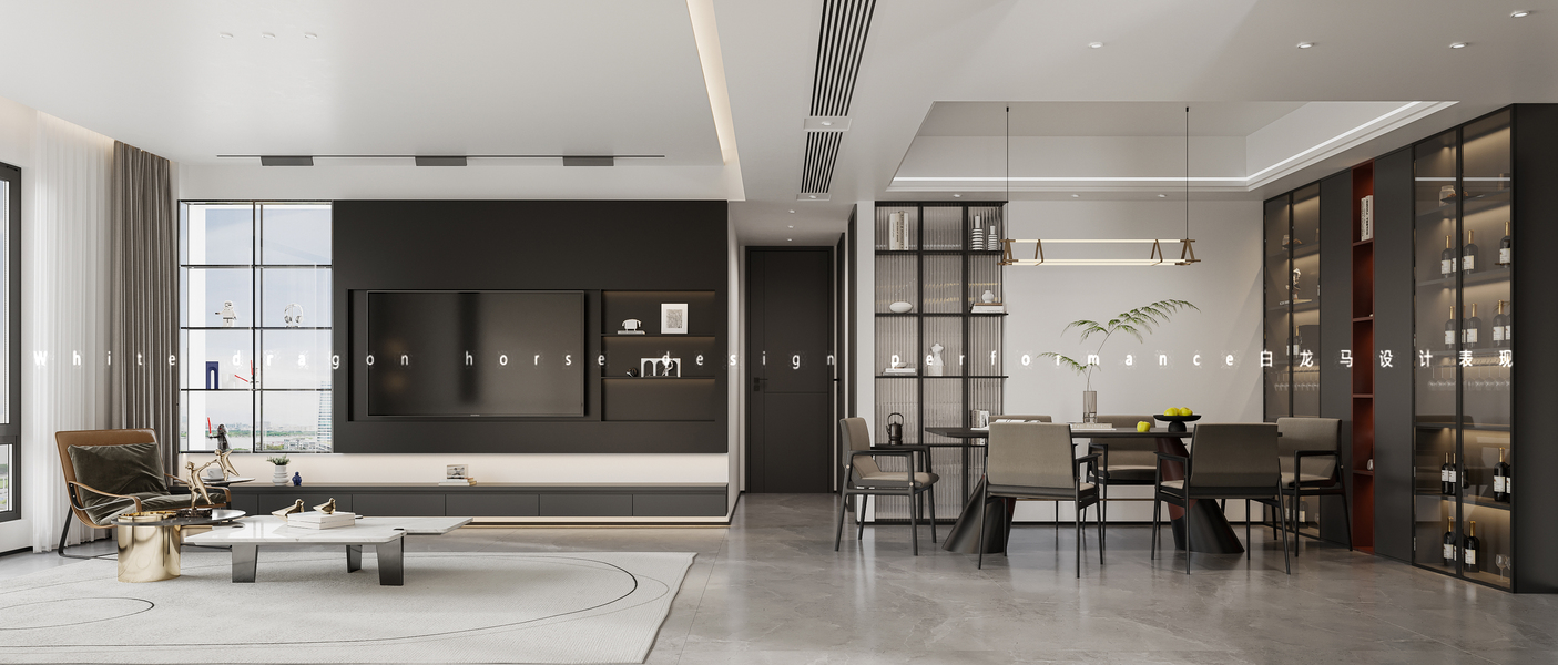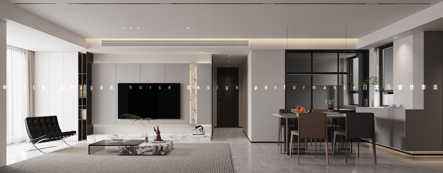 现代客餐厅卧室——白龙马效果图