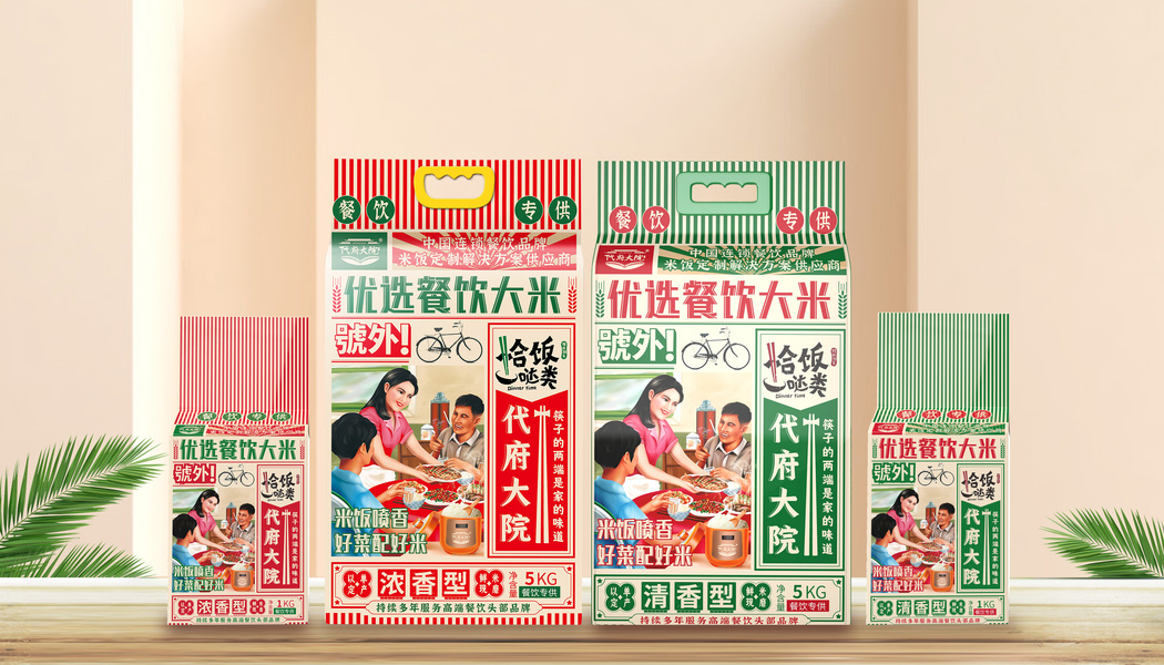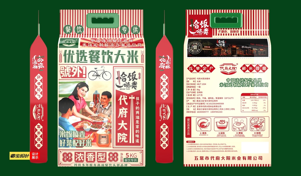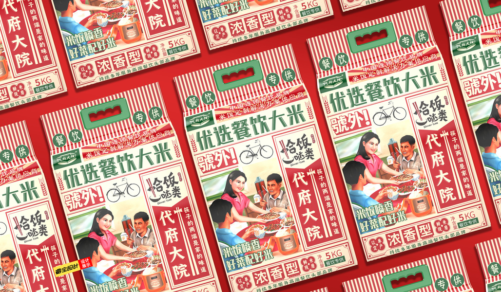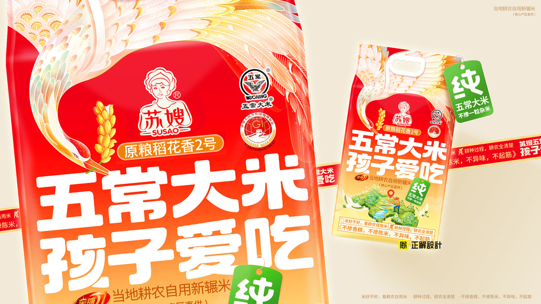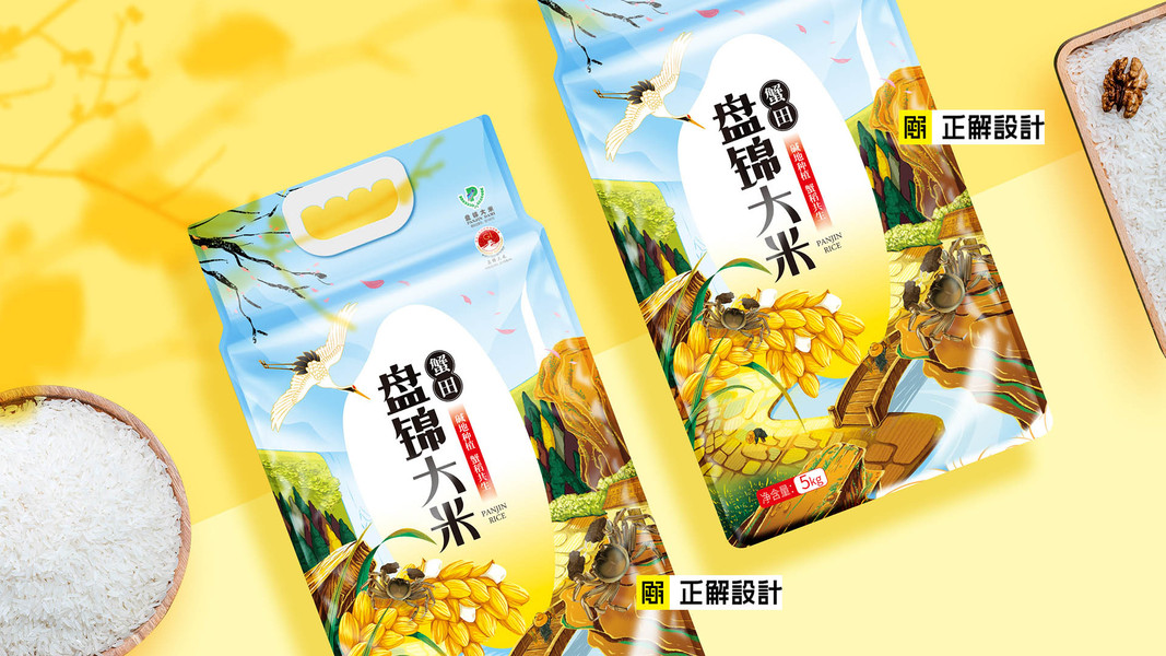 五常大米包装袋设计、插画风格包装设计、国潮包装设计