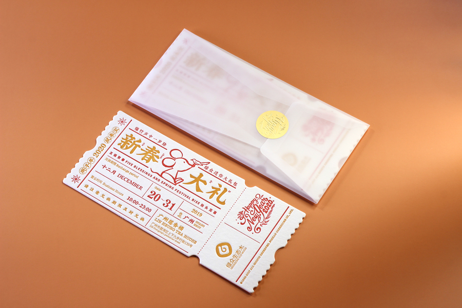 票根式邀请函letterpress活版印刷环保再生木棉纸年卡