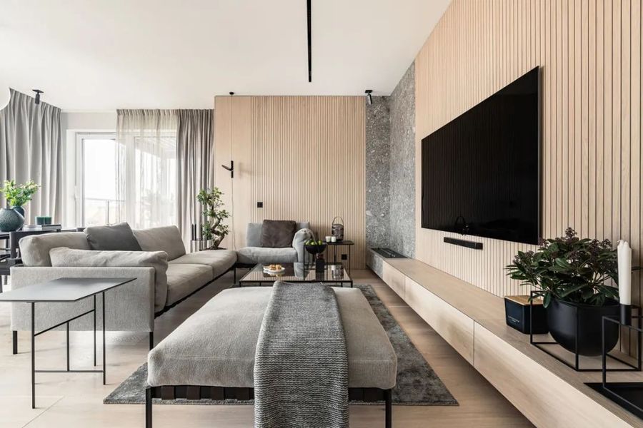 72㎡现代简约,时尚灰+开放式设计,空间宽敞有质感!