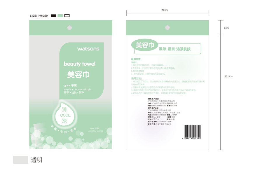 屈臣氏的美容巾包装设计(刚出来工作时候做的,不是自己想要的)