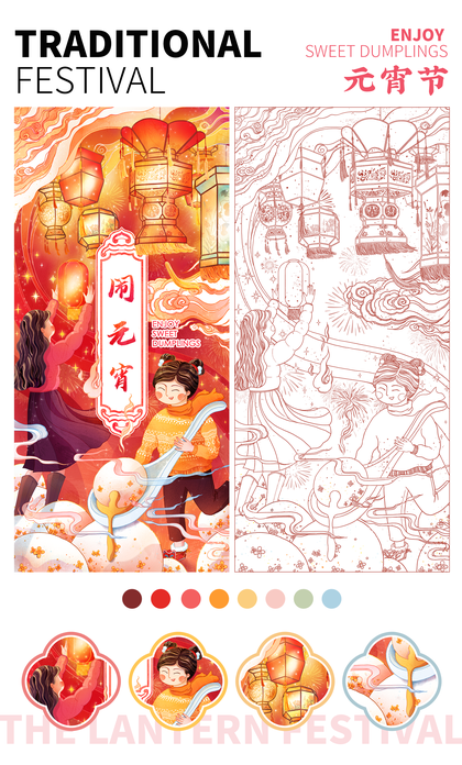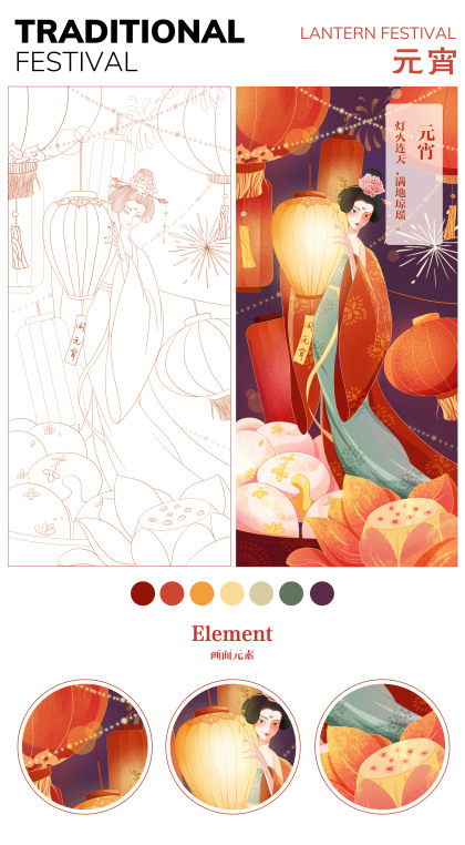 「中国传统节日系列插画」——除夕丨春节丨元宵节