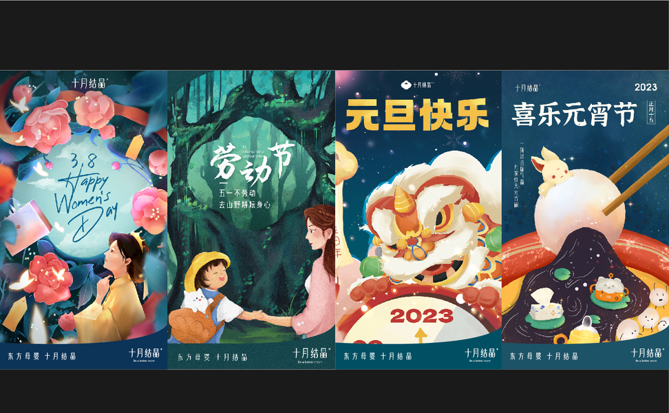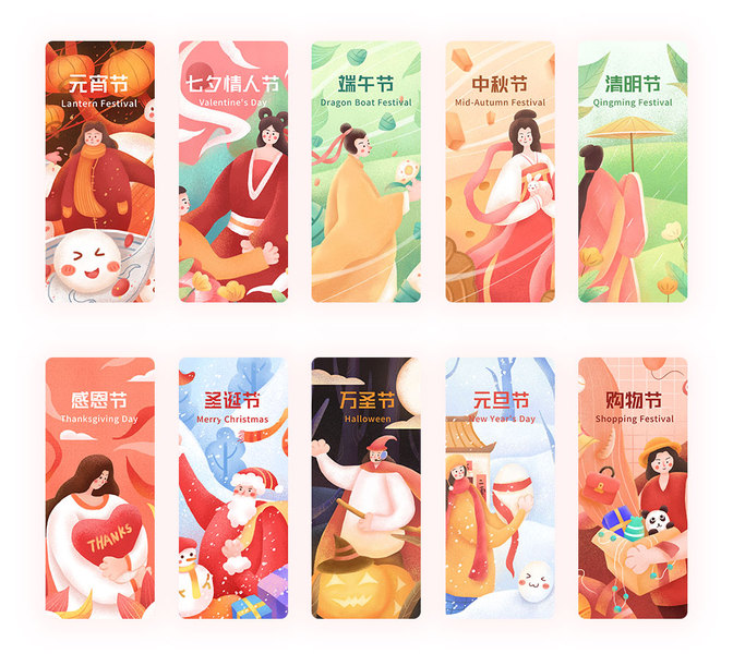 国潮节日插画(中秋 国庆 元旦 元宵)