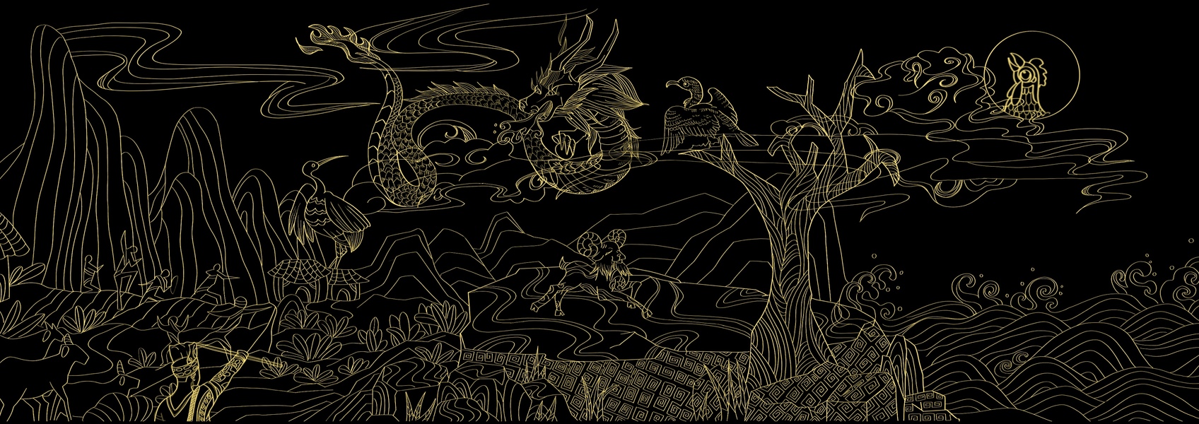 徒河锦礼——瑞兽迎新酱酒礼盒插画