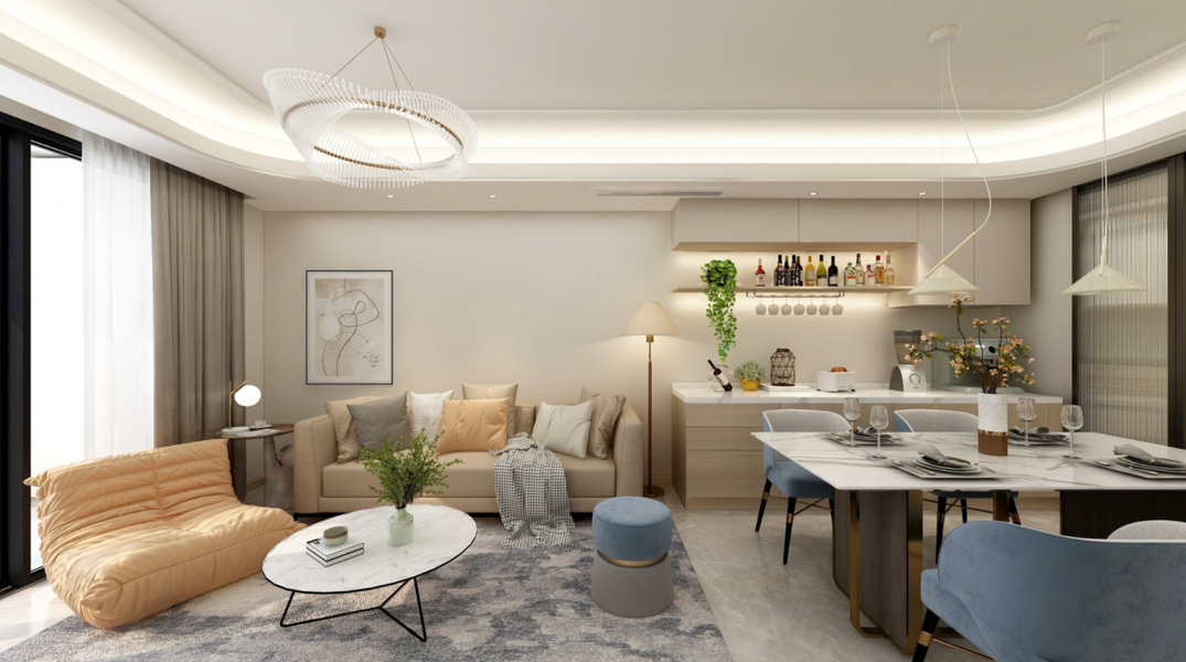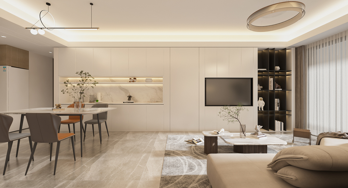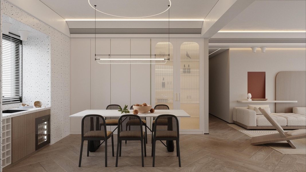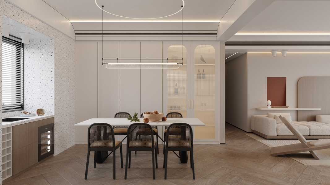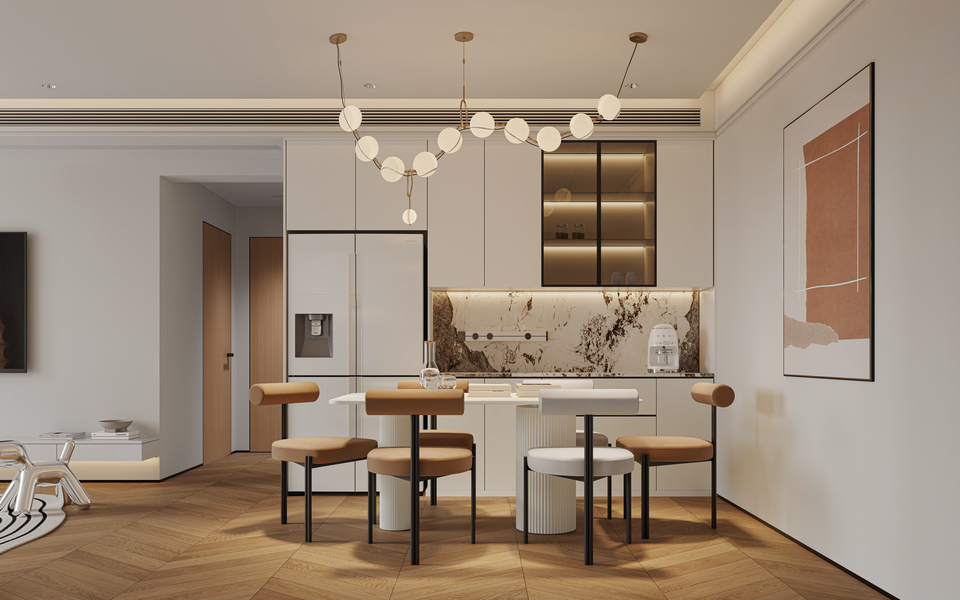 现代奶油风客餐厅效果图设计
