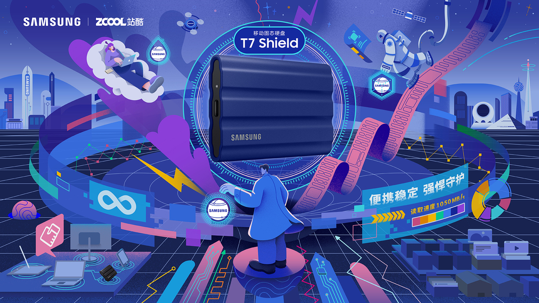 闪耀星动三星移动固态硬盘T7Shield创意海报设计
