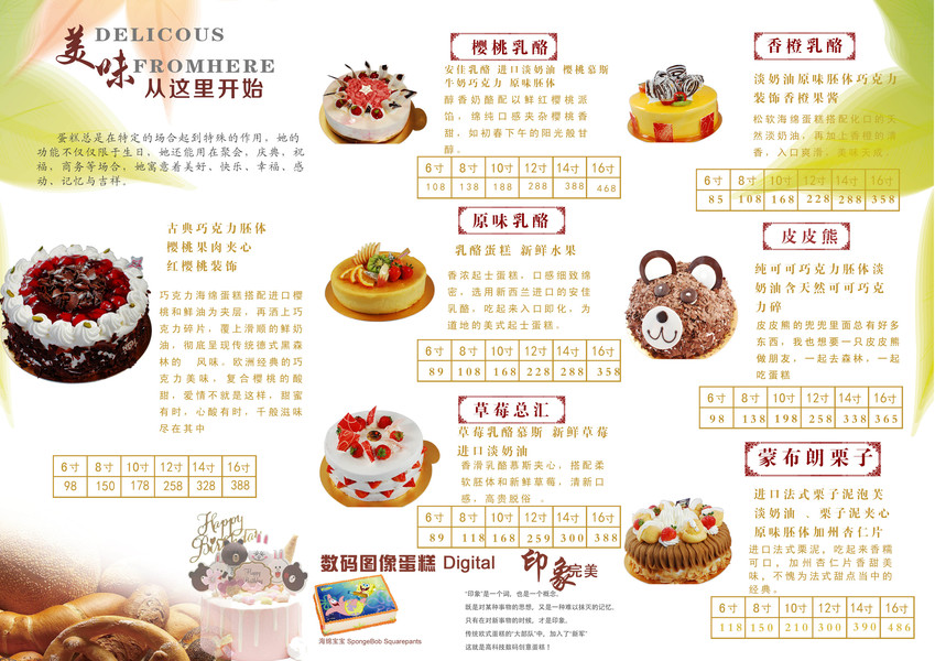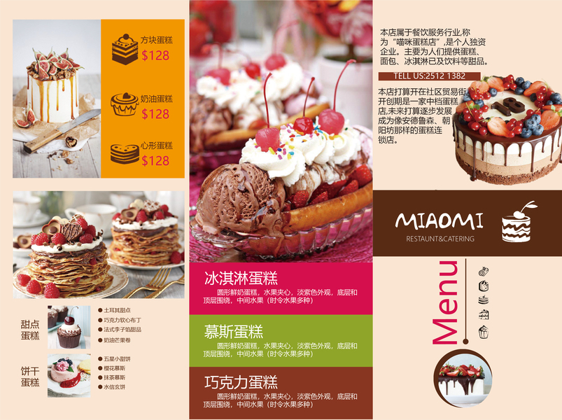 蛋糕菜单三折页