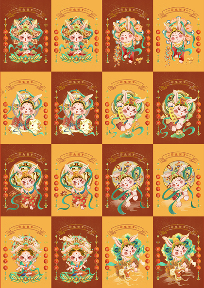 2023·兔年IP新年系列插画/敦煌飞天福兔迎春/系列