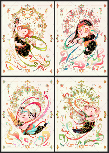 敦煌十二生肖原创系列插画|生肖ip设计|生肖文创设计