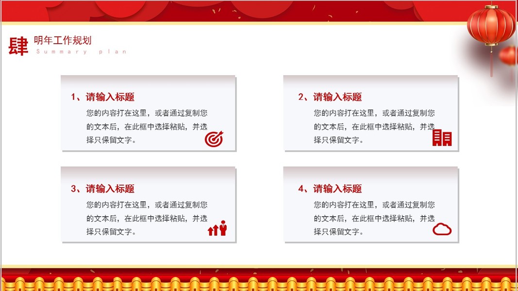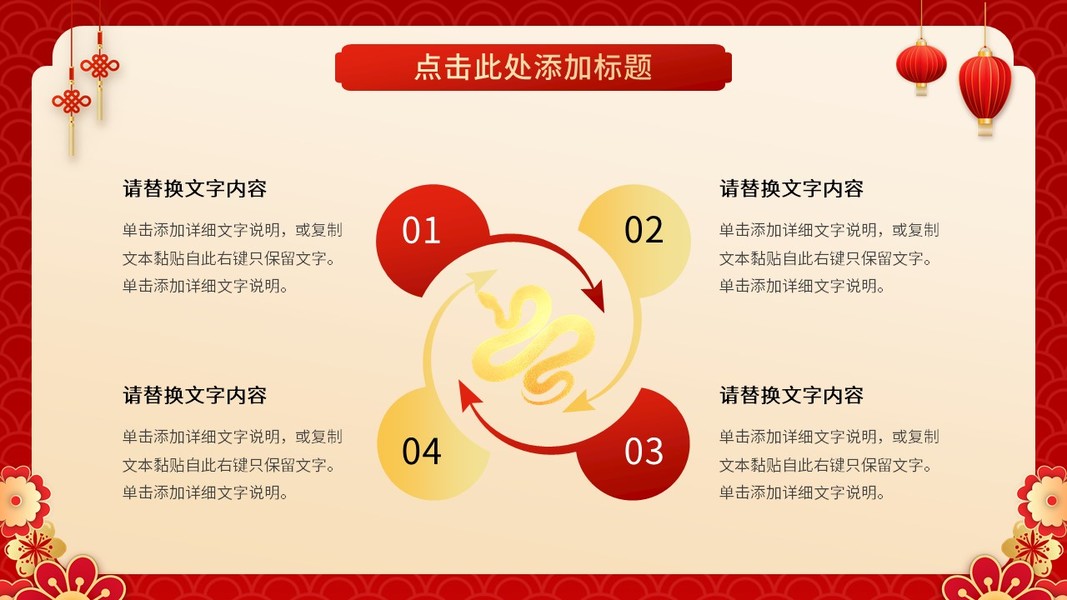 红色中国风蛇年纳福商务总结新年计划PPT模板
