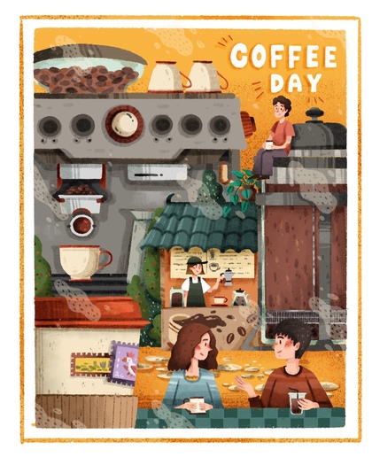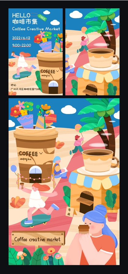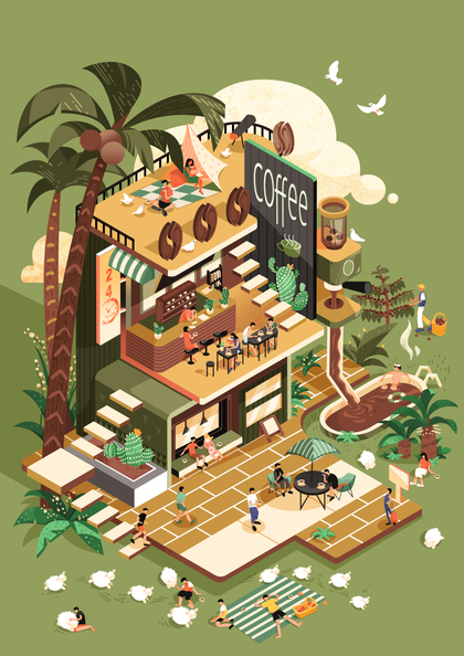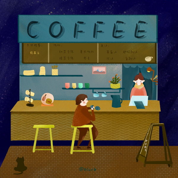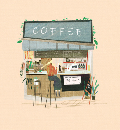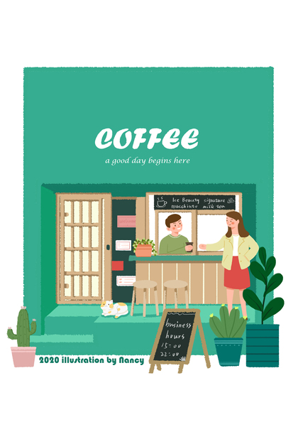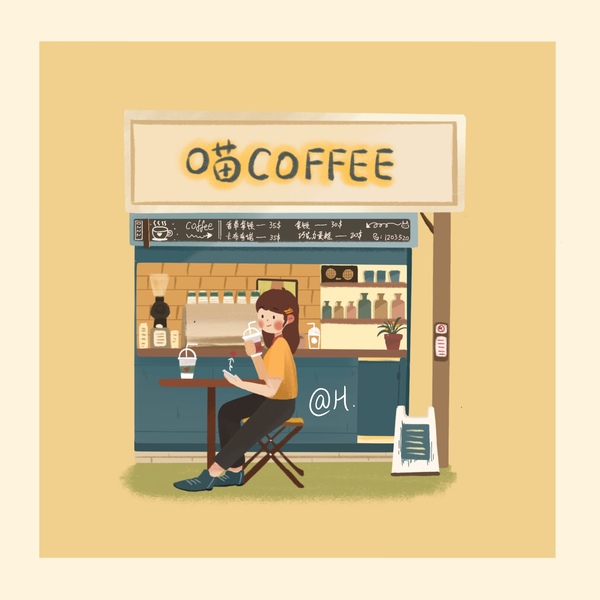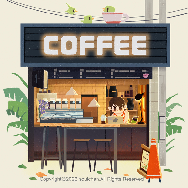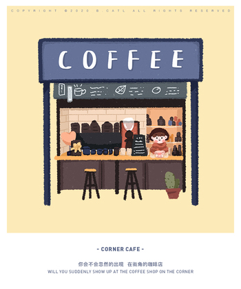 【iPad绘画】有间小店系列 | 01-街角的咖啡店