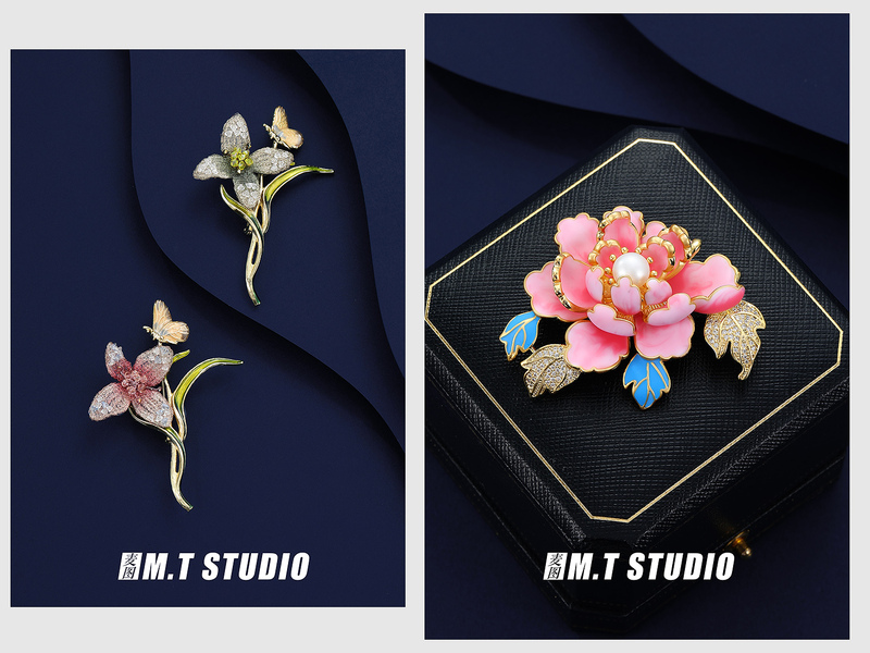 产品摄影 珠宝饰品胸针静物模特拍摄 胸针静物暗黑系拍
