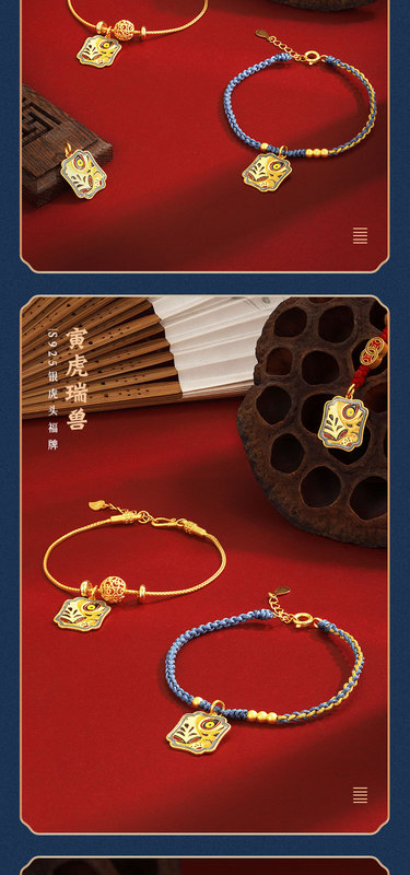 国潮虎年大红色国风老虎牌吊坠项链手链珠宝