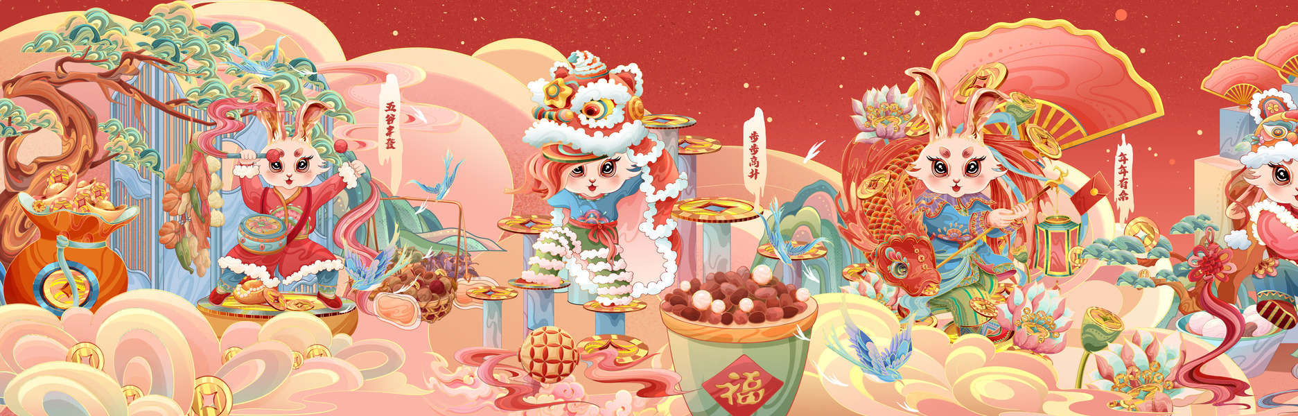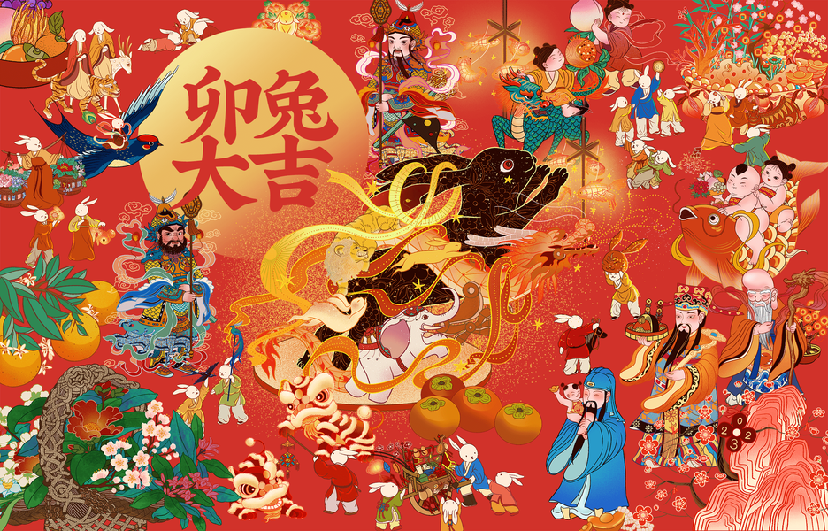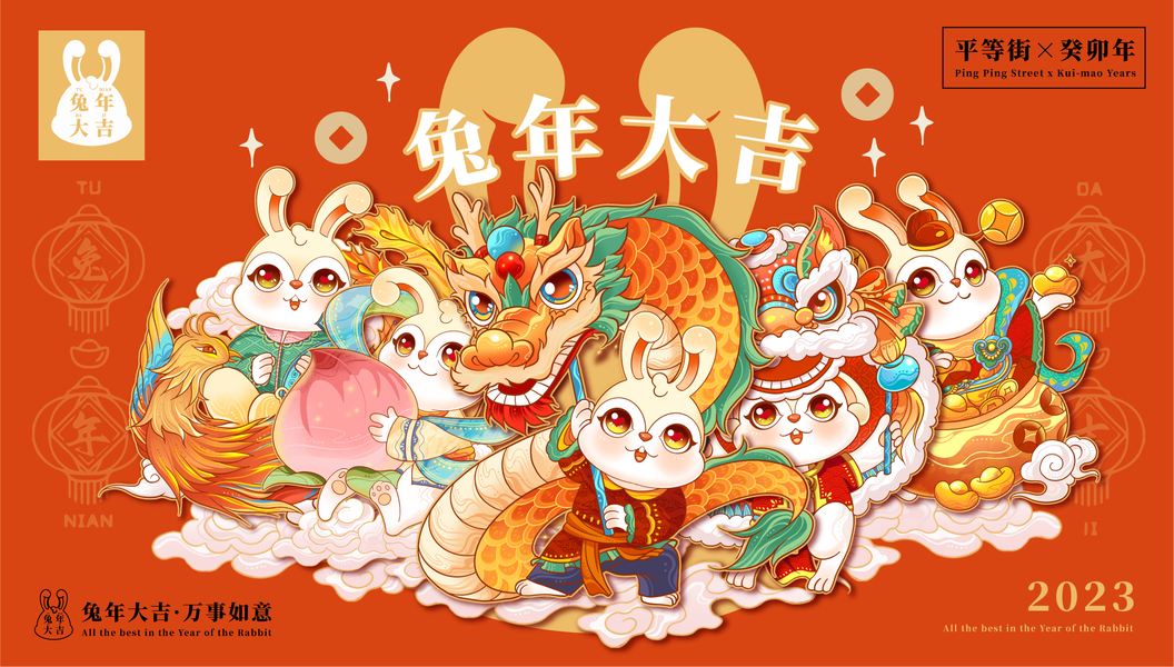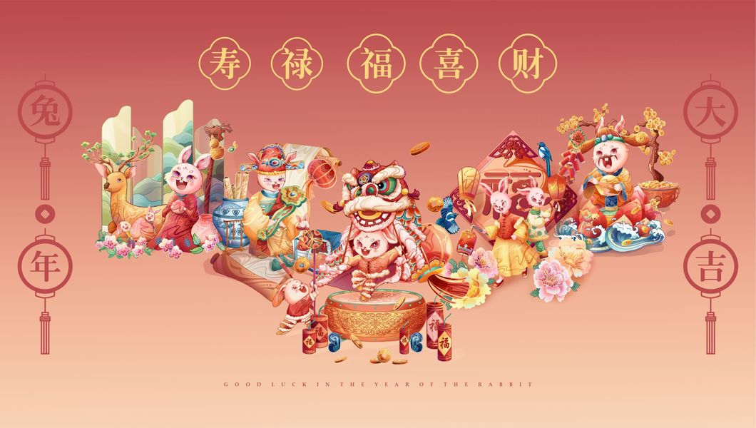 国风插画 | 百富齐·贺新春 2023癸卯兔年IP插画