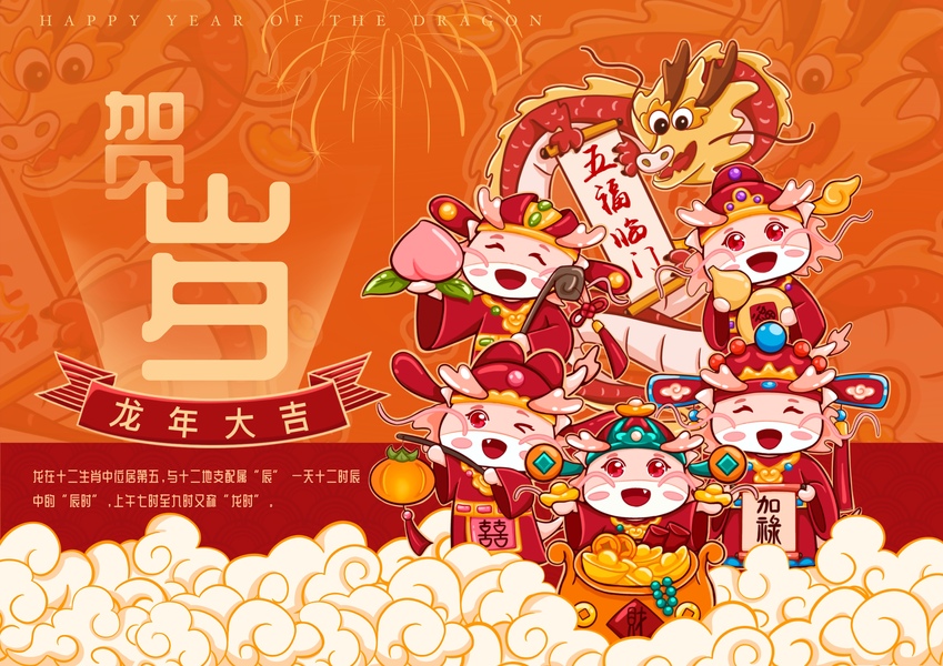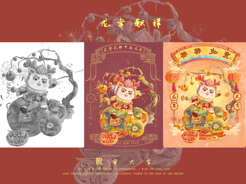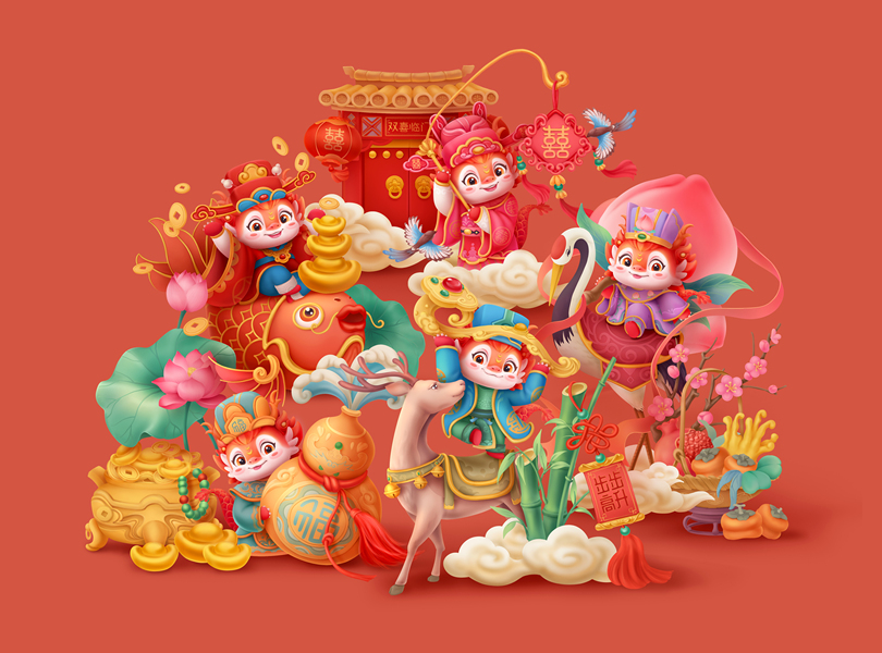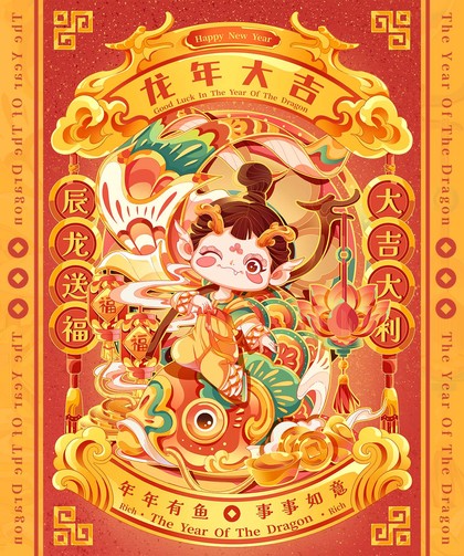 2024龙年IP系列 | 龙女送福 | 新年习俗插画