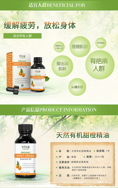 Viva天然有机甜橙精油