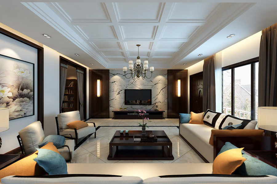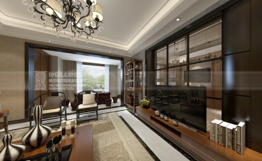 金手指装饰_保利公园别墅400m²新中式风格装修案例!