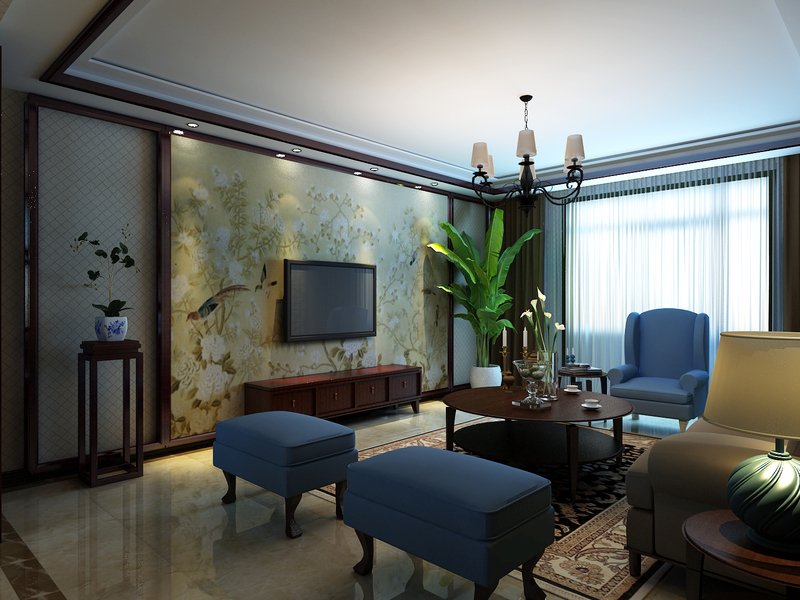 英和紫悦府130平新中式风格三室两厅装修样板间