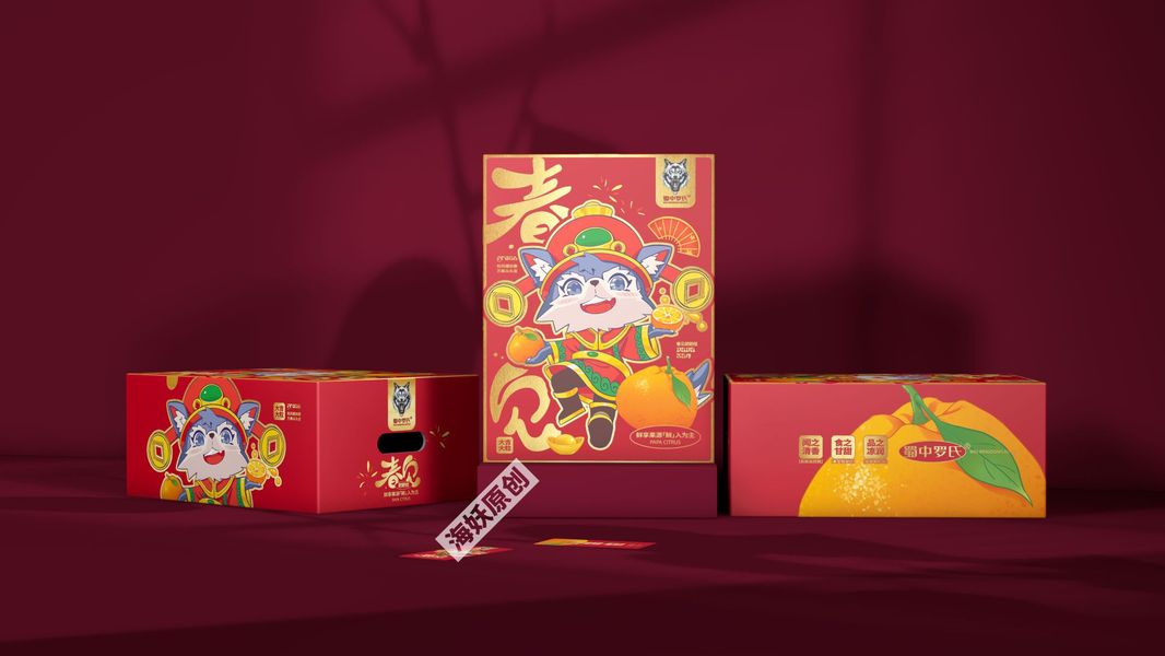 {原创}春见柑橘水果食品手绘礼盒包装设计