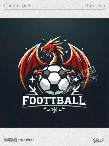 烈火龙心!足球队徽设计打磨球队如龙激情。
