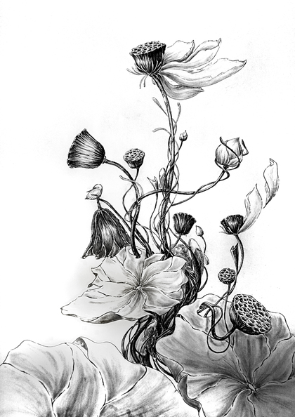 绘画过程,池塘边熟睡中的娃娃,原创插画
