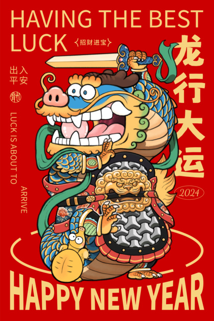哈哈龙生肖插画阿茹生肖IP卡通可爱国潮插画