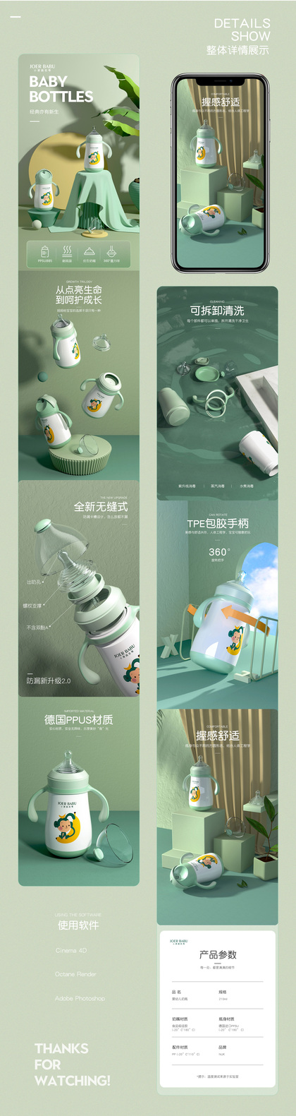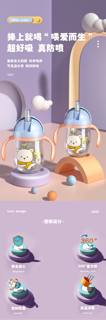 婴幼儿奶瓶详情页设计/奶瓶场景产品渲染*1