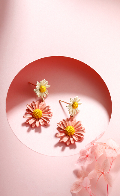 小清新 耳饰 花朵 蜜蜂 时尚首饰 摄影场景 粉色