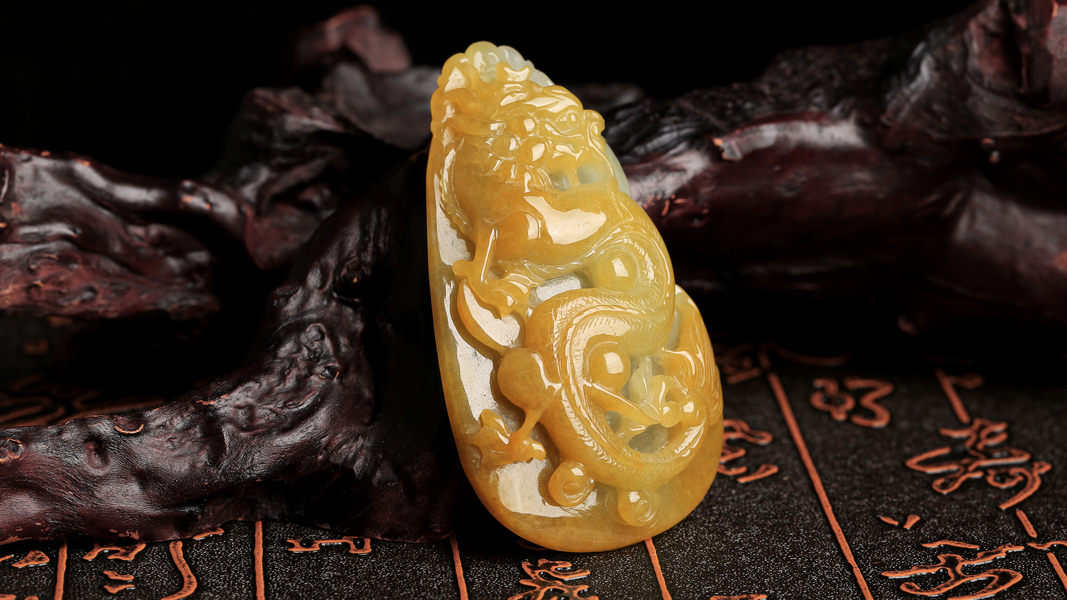 聚翠光廊——冰糯黄翡 双彩随形悟道
