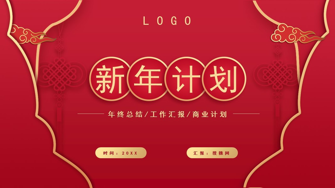 时尚红色商务年终总结汇报新年计划PPT模板
